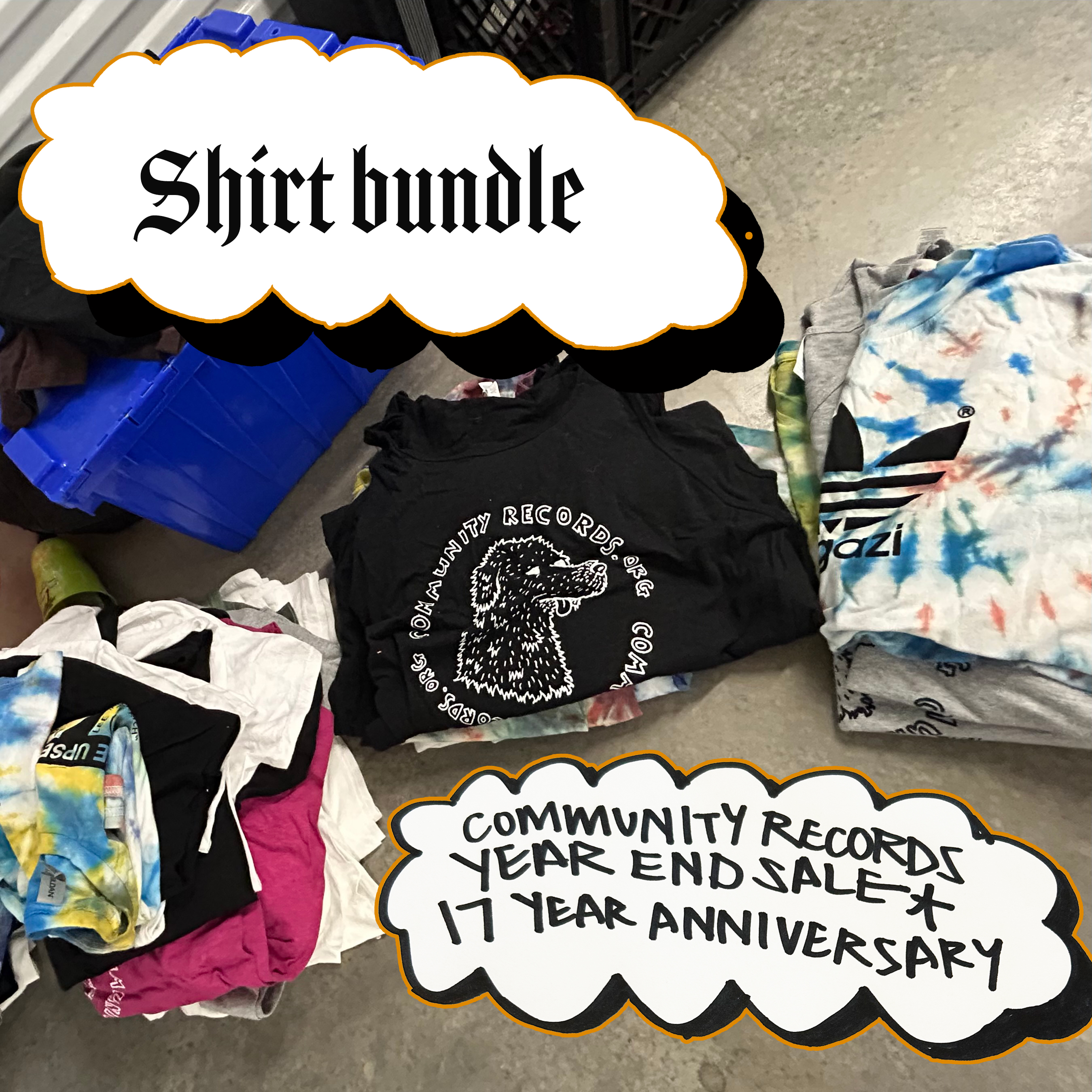 Clearing out some Community Records merch stock. One of the two shirts will be a Community Records logo print, the other will be from our backstock of other merch from over the years. If you already have one of the prints, gift it or use it as a back patch :)